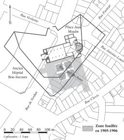 L'emplacement de l'abbaye à l'époque médiévale au sud de Metz.