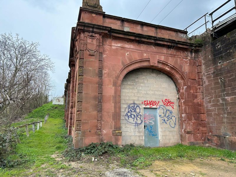 La gare de Metz-Chambière dans son état actuel en mars 2024. Abandonnée depuis plusieurs années, elle est livrée à la végétation, avenue de Blida.