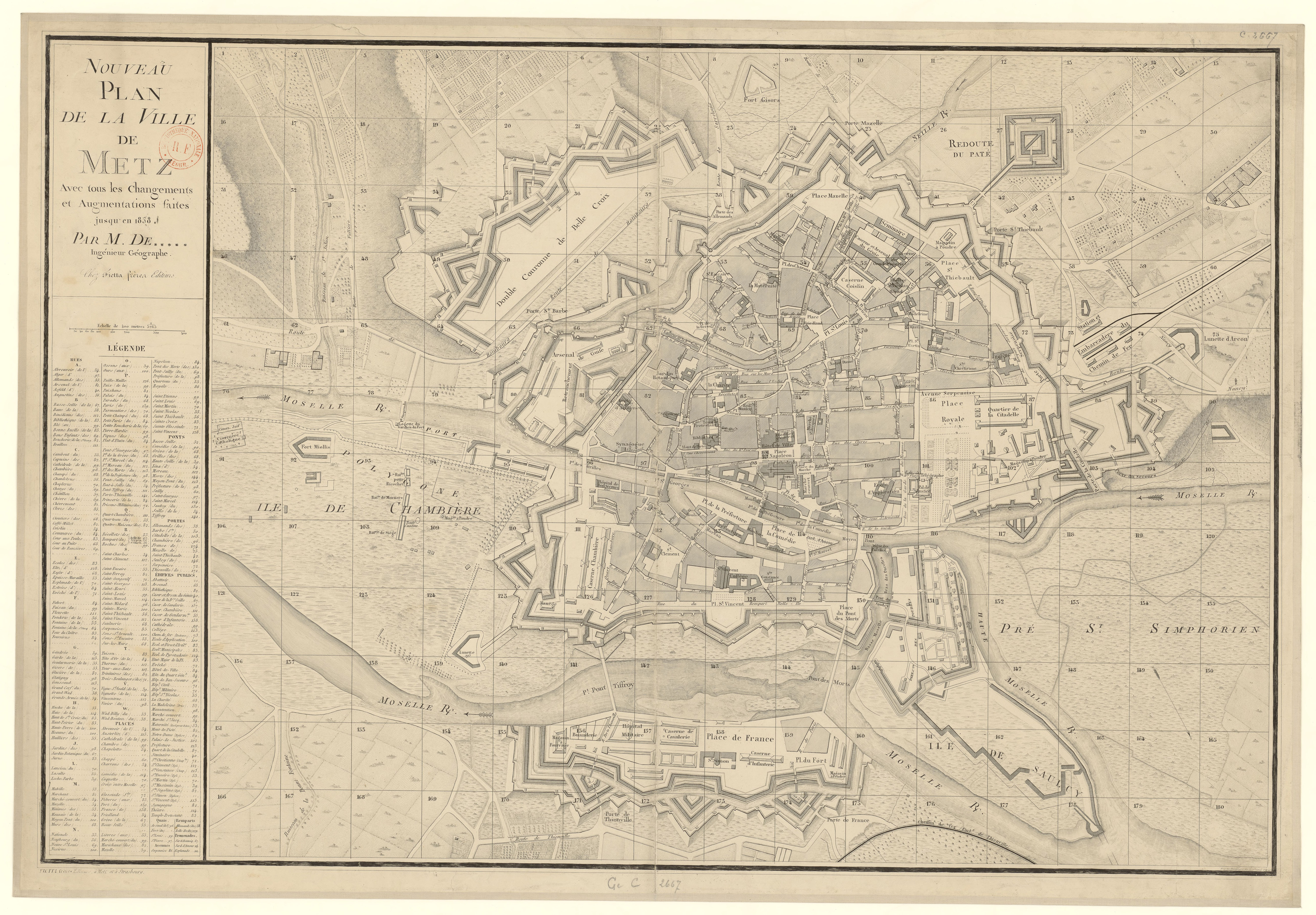 | 7 décembre 2025 à 22:59 | Plan remparts retranchement guise.png (fichier) | 502 kio | Administrateur (discussion | contributions) | Plan des remparts au nord-est de Metz, autour du retranchement de Guise, mis en relief avec les emplacements actuels des vestiges des murailles et des tours, ainsi que du lit de la Seille. Plan de Julien Trapp. Catégorie:Fichier/Années 2010 Catégorie:Fichier/Quartier de l'Arsenal Catégorie:Fichier/Quartier Chambière | 1 | |