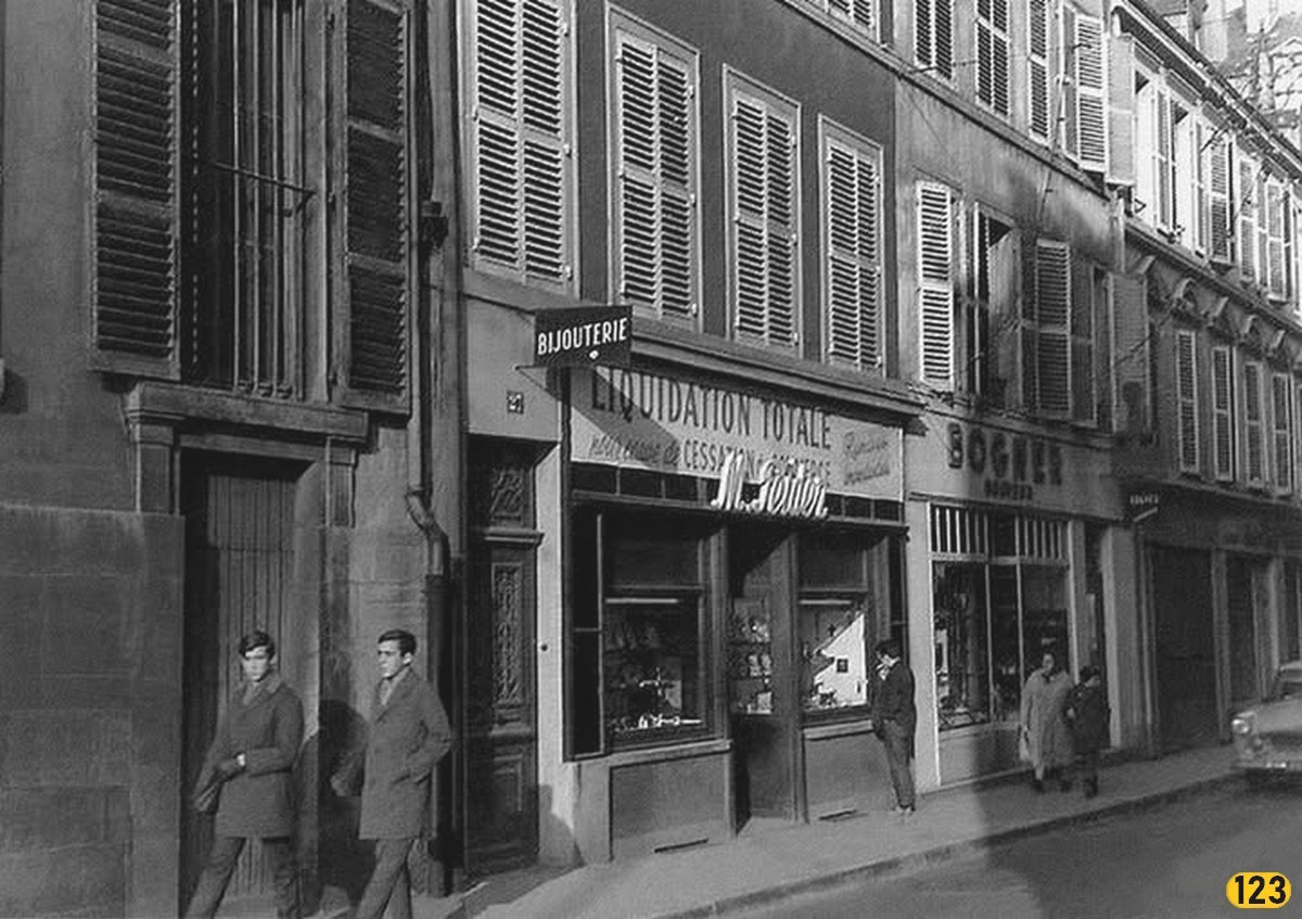 Vue du bas de la rue des Clercs en 1964, sur le bloc détruit pour construire les Galeries Lafayettes (n°27 et 25) sur la photo. Cliché Paul de Busson, collection Christian Fauvel, posté sur Facebook.